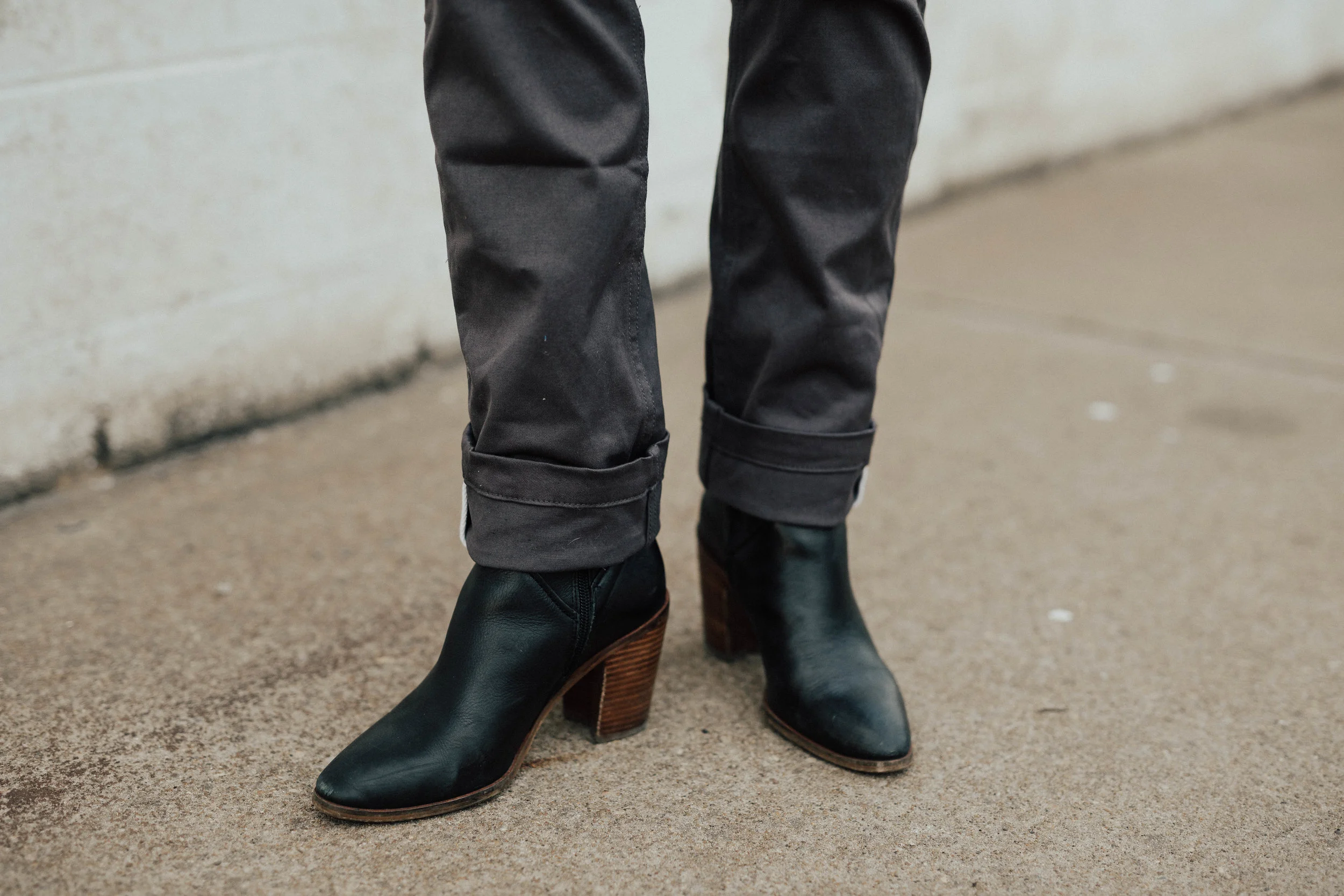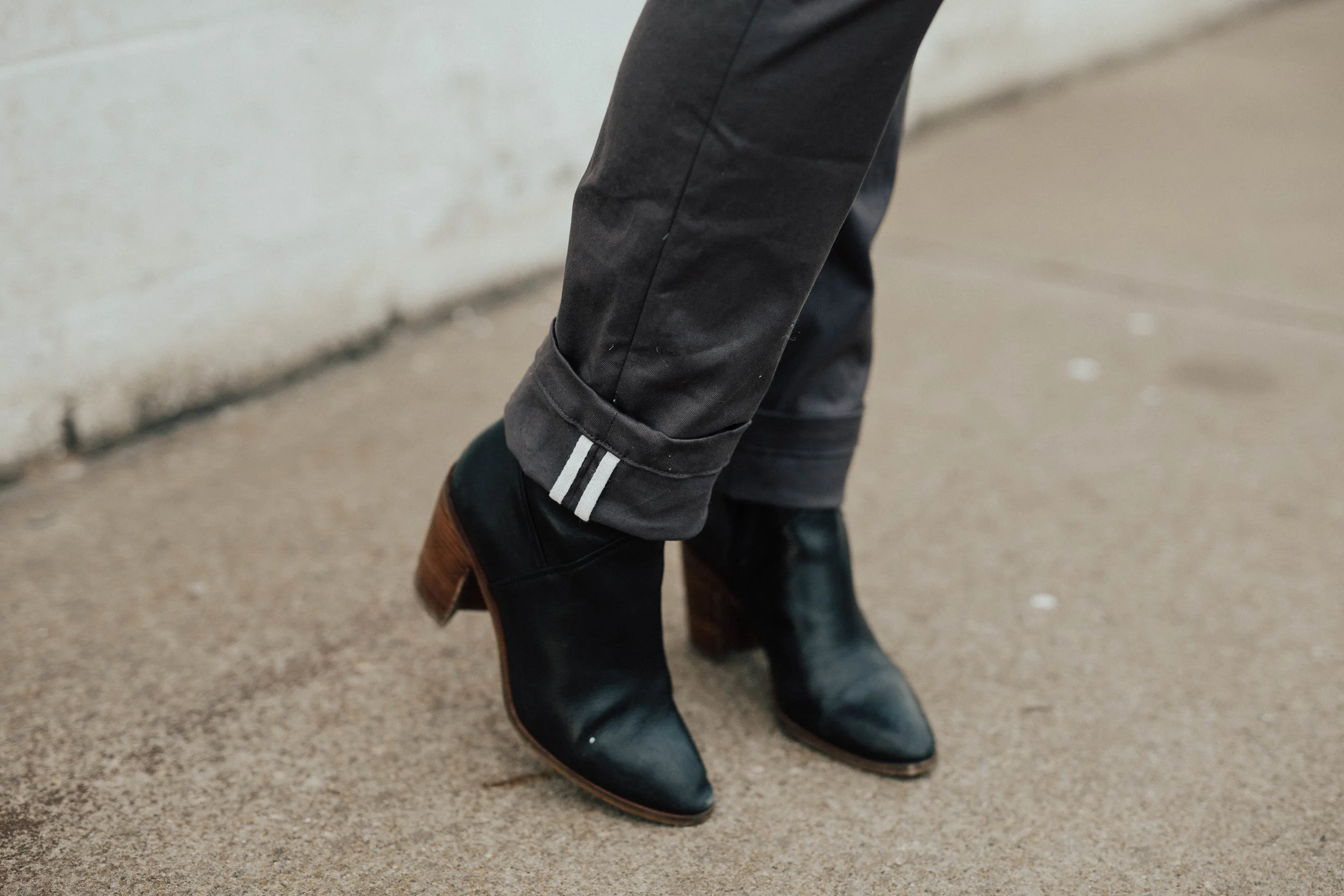 STYLE : The style can transition for many activities, but definitely recommend wearing them for casual work wear or layered with long sweaters, blazers and jackets as they do wrinkle and bunch occasionally after time. But, the intentional details on these chinos are amazing and something to highlight as unique. The pant has outer pockets that are lined and large enough to fit items like your iPhone. They also have details like twill finishing on the pant leg for cuffing (you can see an example in the picture below). These pants were definitely designed by women and made for women in mind for comfort, style + wear!