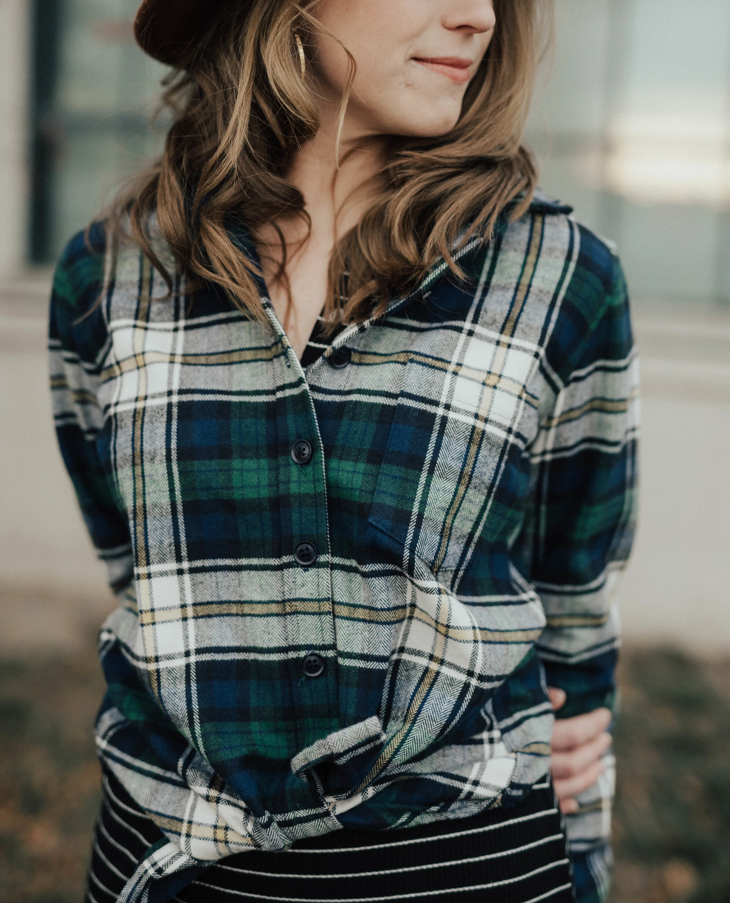 OVERVIEW : Overall, I highly recommend purchasing a Tradlands button down, whether a flannel, cotton or silk option. The quality is incomparable and 100% worth the price as this is a flannel you will own forever. I love one of the unique features about their flannels and button downs, is the attention to fit and detail. One of the best qualities of the shirt is the button placement - they have designed each shirt with 8 buttons to help avoid the "boob gap" (awkward cleavage) women typically experience while wearing these styles.